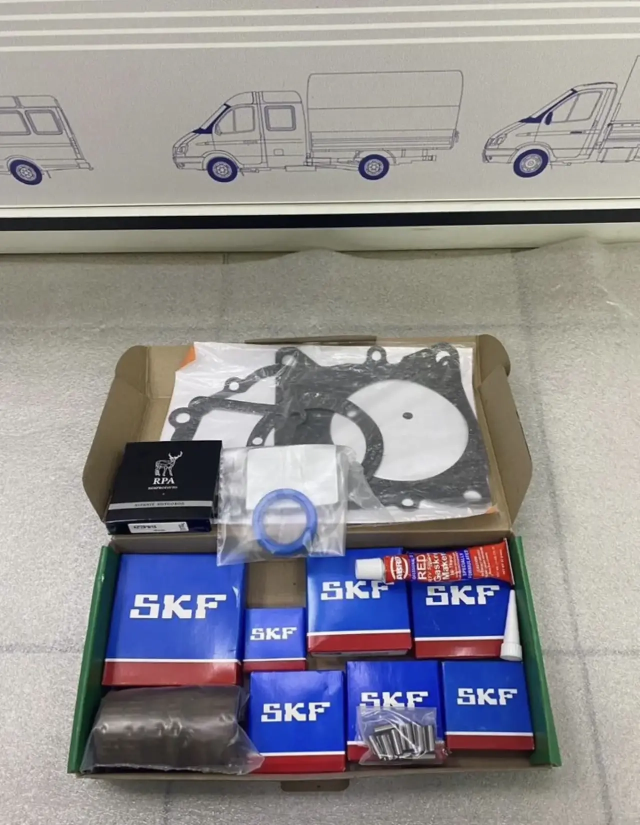 Ремкомплект на усиленную КПП. В наборе: подшипники, ролики, сальник , прокладки, герметик.